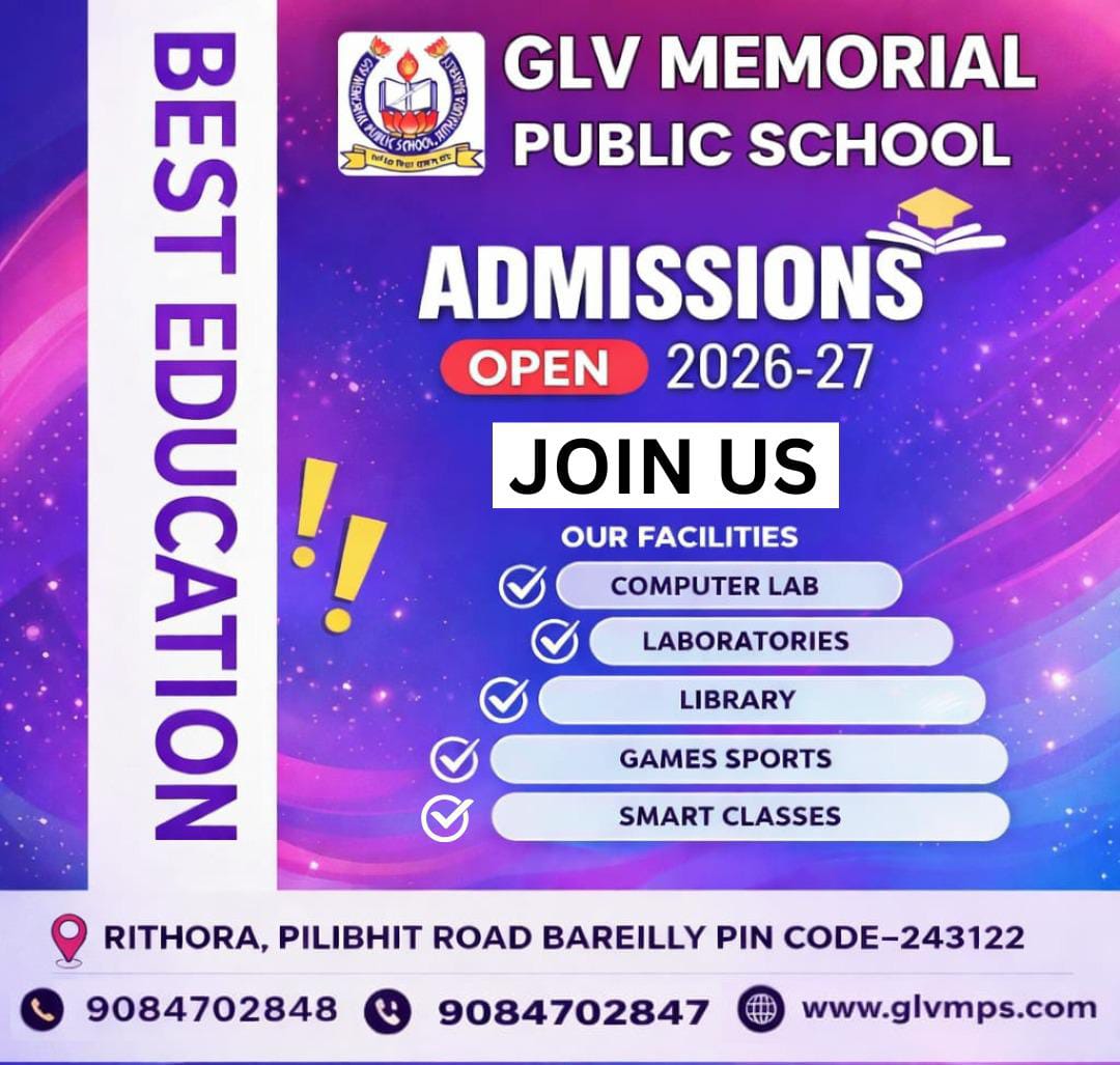 Bhallabh Bhai Shikshan and Takniki Shikshan Samiti (U.P.) has established an English Medium school as GLV Memorial Public School Rithora pilibhit road Bareilly in the Year 2005.