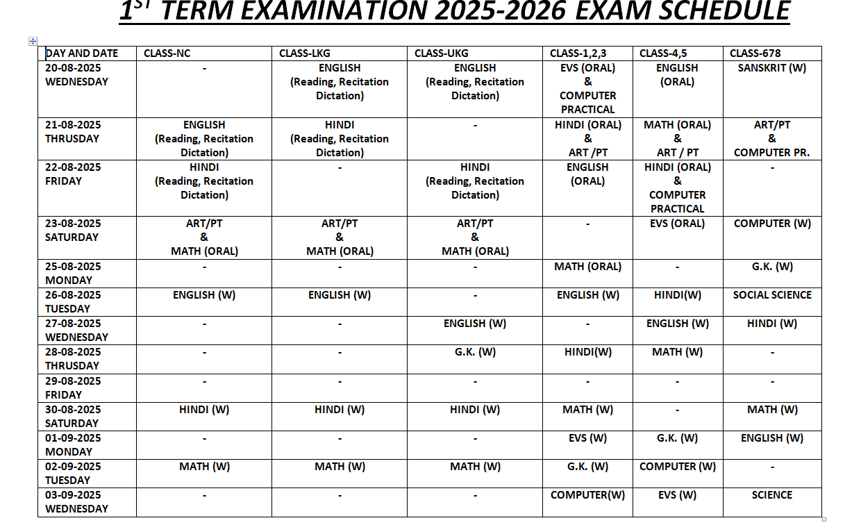 1ST TERM EXAMINATION EXAM SHEET 2025-2026